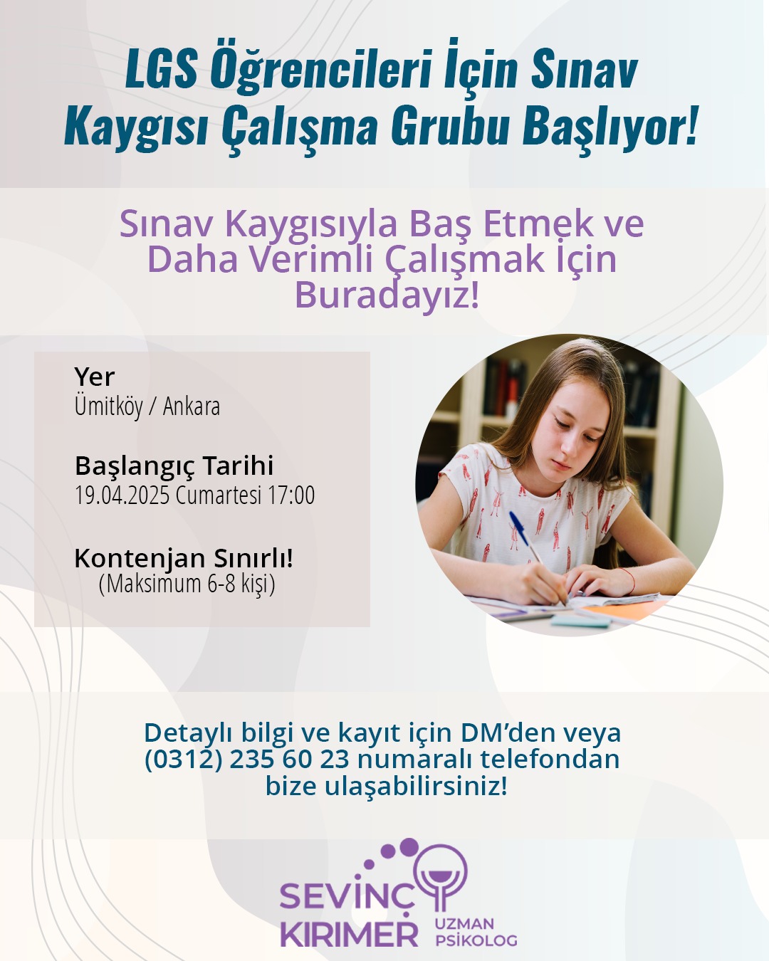 • LGS Öğrencileri İçin Sınav Kaygısı Çalışma Grubu Başlıyor